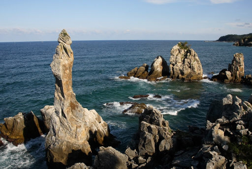 새해 아침이면 기암절벽의 바다 위로 시뻘건 태양이 떠오르는 추암해수욕장 바닷가엔 촛대바위 2기가 나란히 서 있었지만 숙종7년(1681) 발생한 지진으로 1기는 사라졌다.