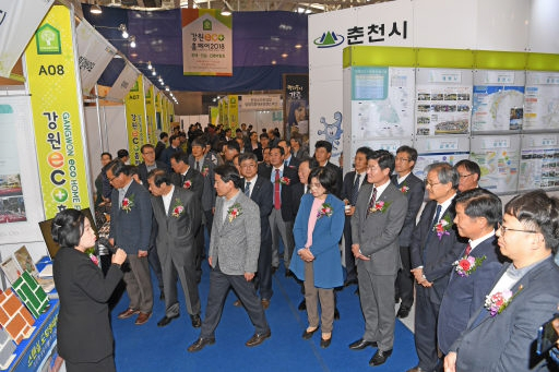 도내 주택·건설·건축 우수자재와 신기술을 총망라한 '강원에코홈페어2018'이 지난 31일 춘천역앞 봄내체육관에서 3,500여명의 관람객이 찾은 가운데 막을 올렸다.