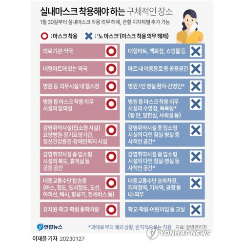 대신 의료기관과 약국, 감염취약시설, 대중교통 등 감염 위험이 높은 일부 장소에서는 실내 마스크 착용 의무를 유지했다.