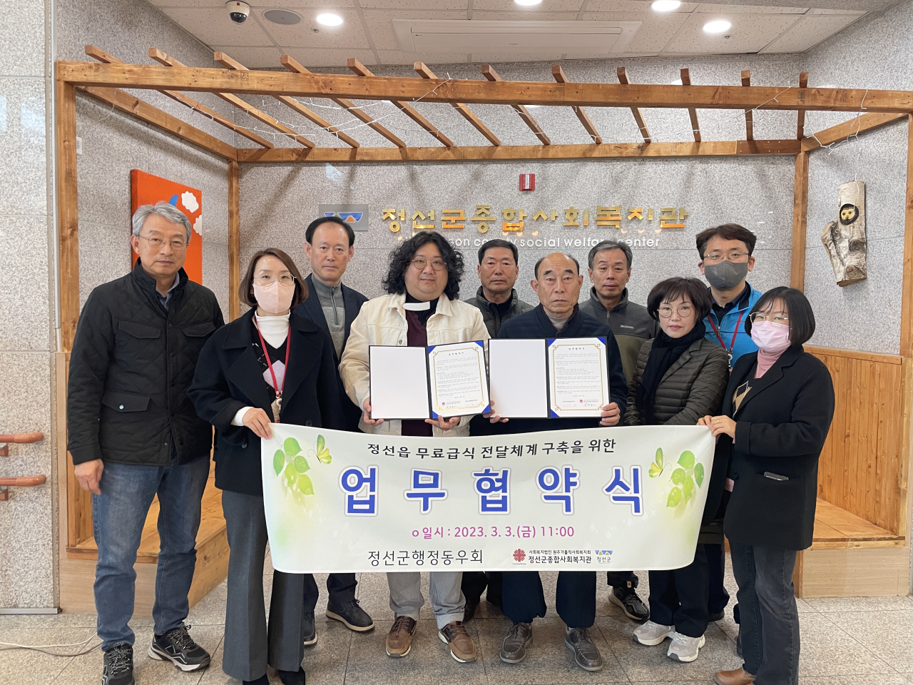 이날 협약에 따라 양 기관단체는 정선읍 무료급식사업과 연계해 식생활 위기 계층을 발굴, 지원하기 위한 사회 안전망 구축 활동 을 전개해 나갈 방침이다.