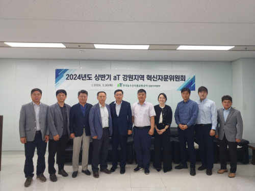aT(한국농수산식품유통공사) 강원지역본부는 30일 지역본부 회의실에서 2024년도 상반기 강원지역혁신자문위원회를 열고 유관기관 및 산업 관계자들과 농산물 유통구조 효율화를 위한 농산물 온라인도매시장 활성화 방안에 대해 논의했다.