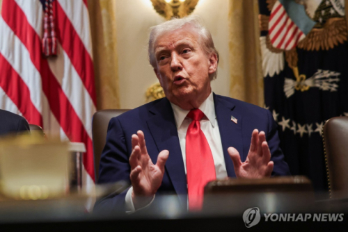 ◇도널드 트럼프 미국 대통령이 9일(현지시간) 백악관에서 국무회의를 주재하며 발언하고 있다. 2025.10.9 (UPI=연합뉴스)
