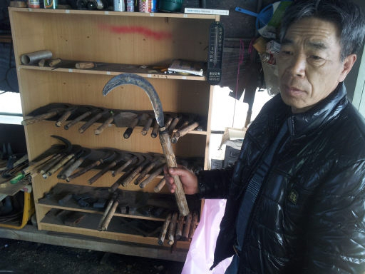 요즘은 주문이 거의 들어오지 않아 힘겨운 나날을 보내고 있다. 며칠 전에는 인제군 서화면 천도리에서 이곳까지 찾아온 한 농민의 주문에 기꺼이 화덕에 불을 지펴 낫을 만들어 줬는데 농기계 하나 만드느라 모터를 돌리고 화덕을 지펴야 하니 타산이 맞을리 없다.