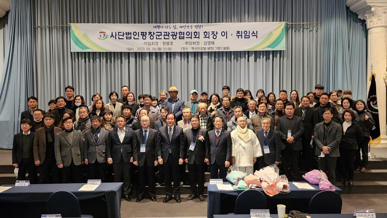 (사)평창군관광협의회 제4차 정기총회 및 회장 이·취임식이 16일 평창군진부면 켄싱턴호텔에서 심재국 평창군수, 김성기 평창군의회부의장, 최종수 도의원, 원행 스님 등이 참석한 가운데 열려 함봉호 회장이 이임하고 김영해 회장이 새롭게 취임했다.