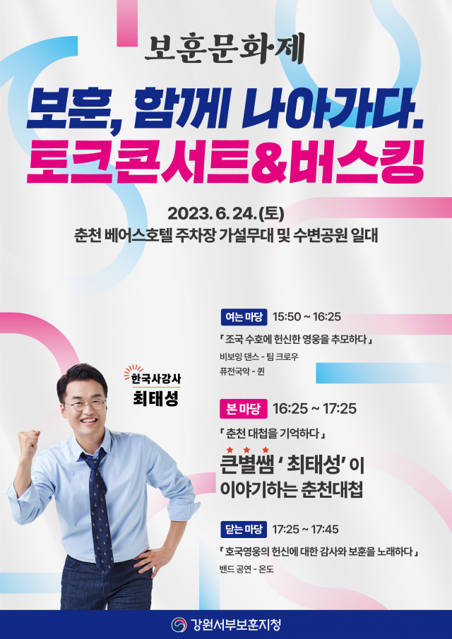 이희정 강원서부보훈지청장은 "국가유공자의 희생과 헌신을 자연스럽게 느끼고 감사하는 계기가 필요하다"며 "앞으로도 보훈문화 확산을 위한 다양한 사업을 추진해 나가겠다"고 말했다.