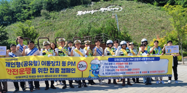 대학 정문과 후문, 동문에서는 학생들에게 개인형 이동장치(PM) 교통법규 내용이 게시된 리플렛도 나눠주는 등 안전문화 캠페인도 열렸다.