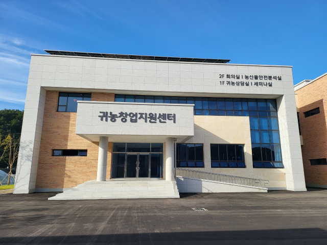 군은 11일 오후 국토정중앙면 청리 농업기술센터 부지에 조성된 귀농창업지원센터 준공식을 갖고 본격적인 운영에 들어갈 예정이다. 국비 12억원 등 총사업비 20억원이 투입된 귀농창업지원센터는 지상2층 연면적 488㎡ 규모로 귀농상담실 및 세미나실, 농산물 안전분석실, 회의실 등을 갖추고 있다.
