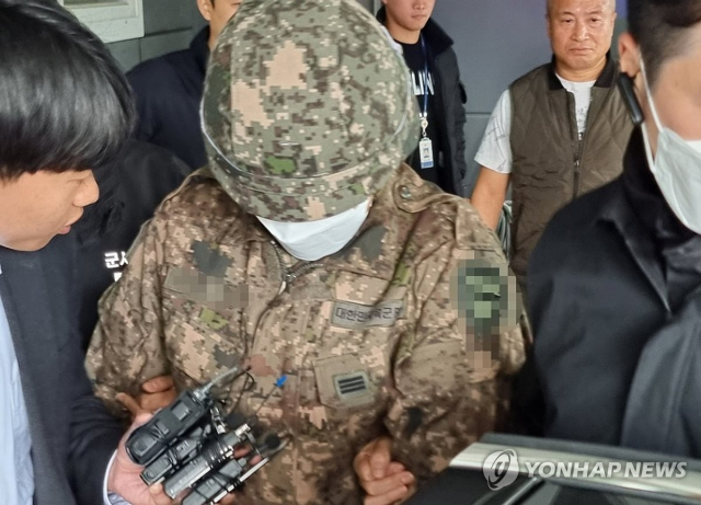 A 상병은 이날 낮 12시 40분께 파주경찰서에서 조사를 마친 후 군모와 마스크로 얼굴을 가린 채 수갑을 차고 군사 경찰에 인계됐다.