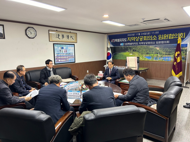 함억철 강원특별자치도 지역상공회의소 임원협의회장(태백상공회의소 사무국장)은 지난 24일 태백상공회의소 회의실에서 4분기 지역상공회의소 임원협의회를 주관했다. 이번 회의에서는 2024년도 상공회의소 사업계획을 논의했으며 새해 첫 사업으로 신년인사회의 성공적인 개최를 위해 업무를 공유하고 장점을 상호보완하는 방안을 강구했다.