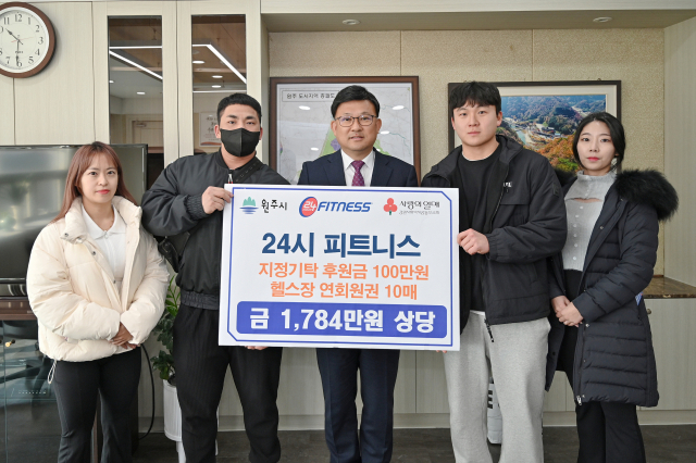 24시피트니스(대표:이주원)는 지난 8일 원주시청을 방문해 원주시 저소득 청년 가구를 위한 지정기탁 후원금 100만원과 1,684만원 상당의 헬스장 연 회원권을 기부했다.