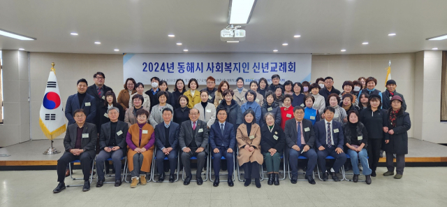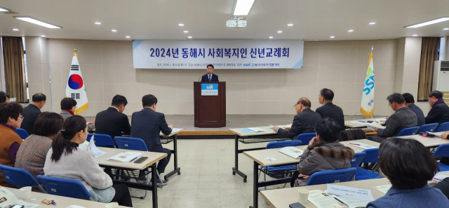 동해시사회복지협의회(회장:권순일)가 주관한 2024년 동해시 사회복지인 신년교례회가 지난 31일 동해시근로자종합복지회관 대회의실에서 열렸다. 이날 이동호 동해시의장, 문영준 동해부시장과 사회복지단체·시설·기관 대표, 실무책임자 등 100여명 참석해 새해 인사를 나누고 앞으로의 활동 계획을 공유하는 시간을 가졌다.
