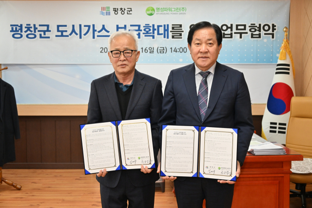평창군과 명성파워그린(주)는 지난 16일 군청에서 심재국 군수와 박정학 명성파워그린(주) 대표가 참석한 가운데 평창군 도시가스 보급확대를 위한 업무협약을 했다.