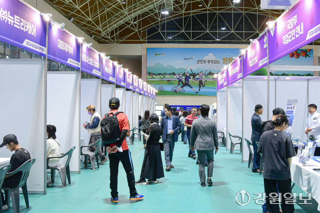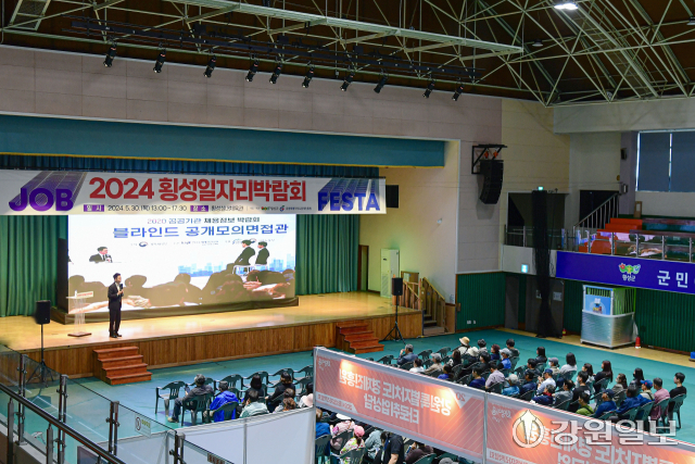 횡성군이 30일 횡성실내체육관에서 마련한 ‘2024년 횡성 일자리박람회’에는 구직자와 기업체 실무진, 주민 등 700여명이 몰려 성황을 이뤘다.