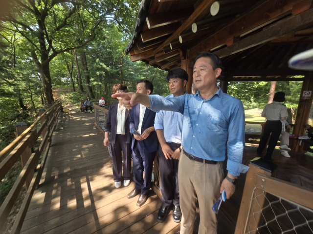 북방면 하화계리 방향의 다리 종점은 곧바로 송학정으로 이어졌다. 172개 계단 데크를 오르면 소나무와 무궁화, 금낭화 등 3만주 이상의 수목이 우거진 무궁화 테마파크가 있었다. 송학정은 장애인, 노약자 등이 안전하고 편안하게 숲을 거닐 수 있는 무장애 나눔길이 조성돼 있다. 군은 송학정교에 조만간 야간 조명을 설치하고, 잔도를 정비해 주민 산책로 뿐만 아니라 관광자원으로도 활용할 계획이다.