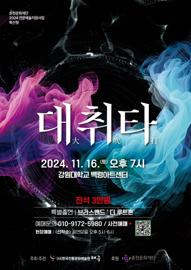 (사)한국전통문화예술원 태극의 ‘대취타’가 오는 16일 강원대 백령아트센터에서 열린다.