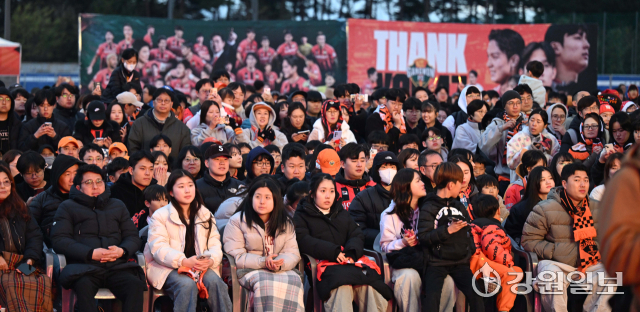 선수단은 마지막으로 다같이 무대에 올라 팬들에게 인사를 전했다. 윤정환 감독은 “선수들과 코칭 스태프, 나르샤 여러분들을 비롯한 강원을 응원해주시는 분들께 감사드린다”고 말했다.