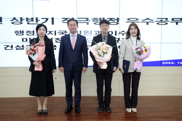 홍천군(군수:신영재)은 2일 대회의실에서 2024년 상반기 적극행정 우수공무원으로 선정된 이수아(최우수) 민원정책팀장, 이규태(우수) 미래성장추진단 주무관, 이영순(장려)지적관리팀장에게 상장을 수여했다.