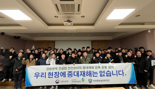 고용노동부 원주지청(지청장:김진하)은 16일 한국폴리텍대학 원주캠퍼스 산학협력관에서 건설업 안전관리자를 대상으로 건설업 중대재해 감축 결의 대회를 진행했다. 이날 참가자들은 사망사고 제로 달성을 위해 총력을 기울일 것을 결의했다.