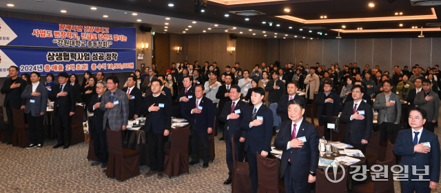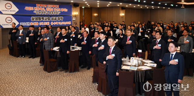 강원대 총동창회 정기총회 및 신년교럐회가 26일 춘천스카이컨벤션에서 신흥주 회장, 정재연 강원대 총장, 신경호 교육감, 육동한 춘천시장, 김진호 춘천시의장을 비롯한 내빈과 회원들이 참석한 가운데 열렸다.