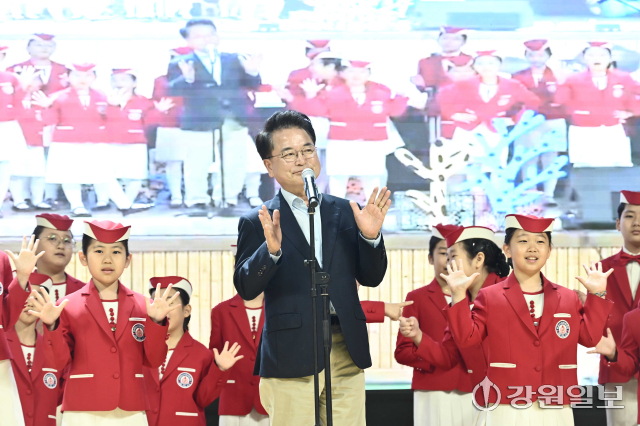 공식 행사는 오전 10시 신나는오케스트라의 식전 공연에 이어 어린이 선서로 막을 올렸다. 이어진 강원일보 어린이합창단의 공연은 육동한 춘천시장이 함께 무대에 올라 합을 맞춰 동요를 불렀다. 육동한 시장은 “어린이가 중심이 되는 어린이 수도 춘천을 여러분과 만들어가겠다”며 “춘천이라는 공동체 안에서 보석 같은 아이들을 잘 길러 나가자”라고 했다.