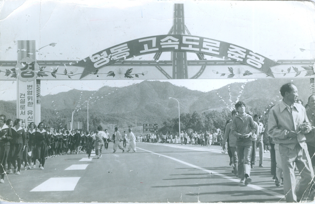 ■1971년 착공~1975년 개통, 97㎞·832m 대관령 돌파=영동고속도로 건설은 제1차 경제개발 5개년계획(19621966)부터 논의됐다. 당시 강원도는 국내 최대 석회석과 무연탄 매장지였지만, 비포장 국도와 험준한 고갯길로 수도권까지 운송이 지체됐다. 정부는 이를 해결하기 위해 1971년 착공, 1975년 개통을 성사시켰다. 당시 새말~강릉 97㎞ 구간은 대관령 해발 832m를 넘어야 하는 최대 난공사였다. 기술 한계 탓에 급커브와 경사가 많아 제한속도가 시속 40㎞에 불과했지만, 수도권~강릉을 직접 연결한 상징적 성과였다. 개통식 당시 박정희 대통령과 영애 박근혜가 참석한 개통식은 이 도로가 갖는 국가적 중요성을 상징적으로 보여주는 사건이었다. 이후 왕복 2차로로 사실상 국도 수준이었던 영동고속도로를 1994년부터 2001년까지 단계적 확장을 거쳐 전 구간 4차로 체계로 개량했고, 이후 수도권 구간의 교통량 급증으로 왕복 6차로, 8차로, 10차로까지 확장되기에 이르렀다.