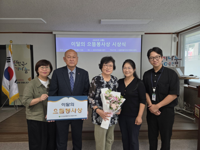 (사)강원특별자치도자원봉사센터는 16일 춘천시자원봉사센터에서 김봉자 봉사자에 대한 이달(8월)의 으뜸봉사상 시상식을 열었다.