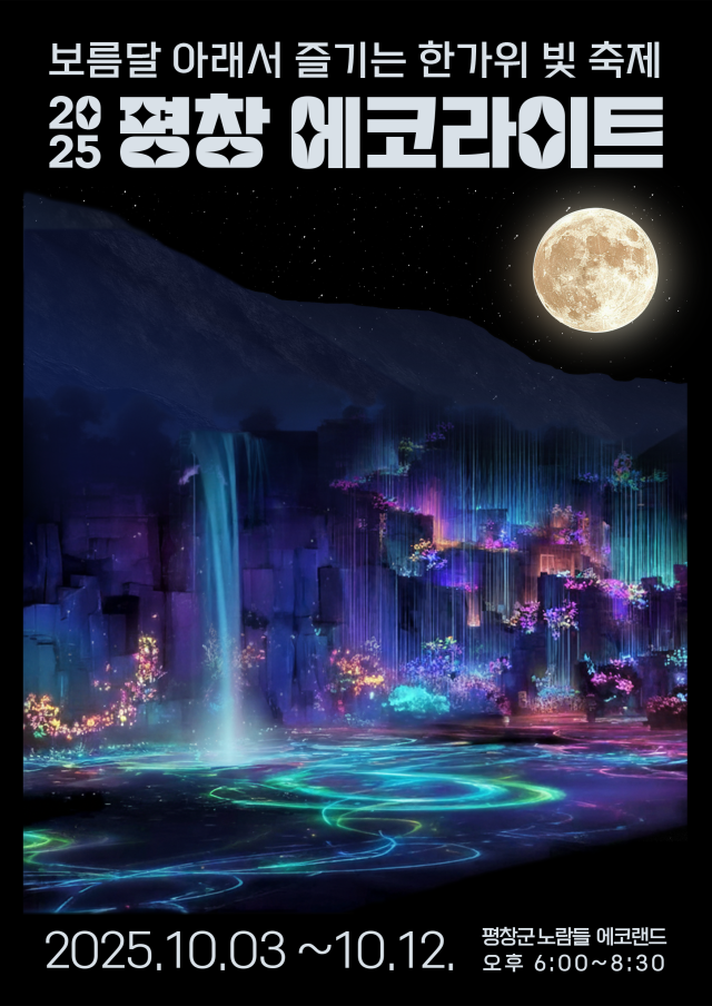 ‘올림픽 도시를 지나, 미래 에코 도시로의 도약, 평창’을 슬로건으로, ‘보름달 아래서 즐기는 한가위 빛 판타지’를 주제로 열리는 이번 에코라이트는 평창의 청정 자연과 빛의 판타지를 결합해 환상적인 야간 경관을 선사한다.