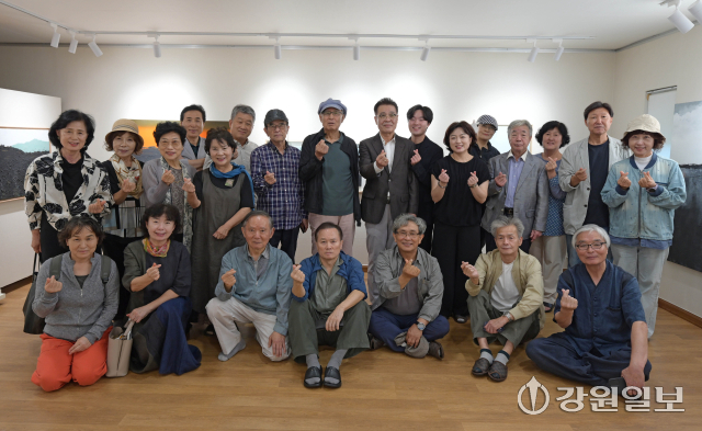 최법진 작가(전 강원대교수) 개인전 '석탄가루의 물성과 고원풍경의 감성' 춘천전시가 20일 춘천 구담 갤러리에서 지인들이 참석한 가운데 개막했다. 전시는 오는 28일까지 열린다. 김남덕기자
