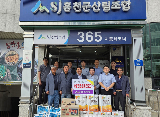 홍천군산림조합(조합장:박유봉)은 23일 본관 앞에서 추석을 앞두고 취약 계층과 조합원 가구에 생필품을 전달하는 ‘사랑의 손길 이웃돕기’ 행사를 개최했다.