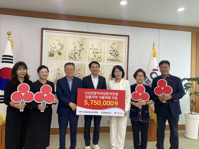 (사)전문직여성 한국연맹은 23일 강원특별자치도청에서 강원사회복지공동모금회에 강릉 가뭄피해 지원금 575만원을 전달했다.