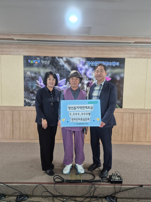 정선읍 천지인 미륵삼존회(대표:허훨) 회원들이 지난 23일 정선읍 지역 내 취약계층 지원을 위해 성금 200만원을 정선읍 행정복지센터에 기탁했다. 전달된 성금은 장애인, 독거노인, 한부모 가정 등 다양한 취약계층의 생활 안정을 돕는 데 사용될 예정이다.
