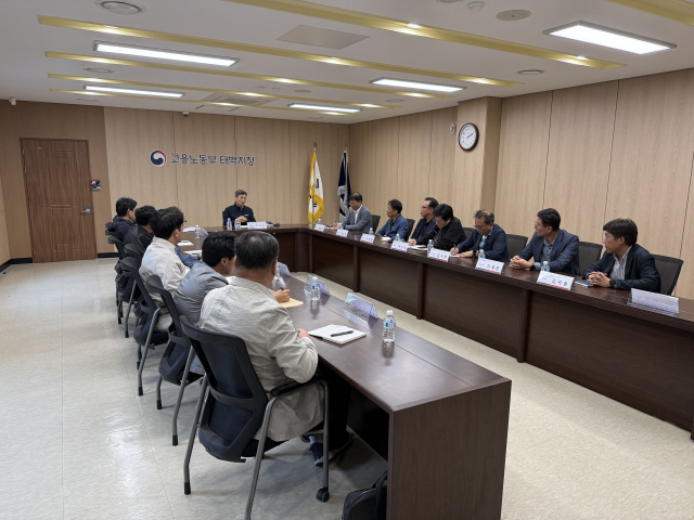 고용노동부 태백지청(지청장:이정구)은 지난 24일 노동부 태백지청 3층 대회의실에서 '안전한 일터 프로젝트' 주요 건설업 14곳 현장소장을 대상으로 정부 정책 방향성, 중대재해 유형, 핵심안전수칙 등을 설명하고 애로사항을 청취했다.