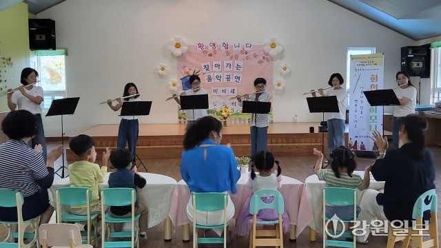 【화천】화천교육도서관 평생학습동아리 ‘비바체’는 25일 신포어린이집을 방문, 어린이들에게 사랑을 가득 담은 플루트 선율을 선사했다.