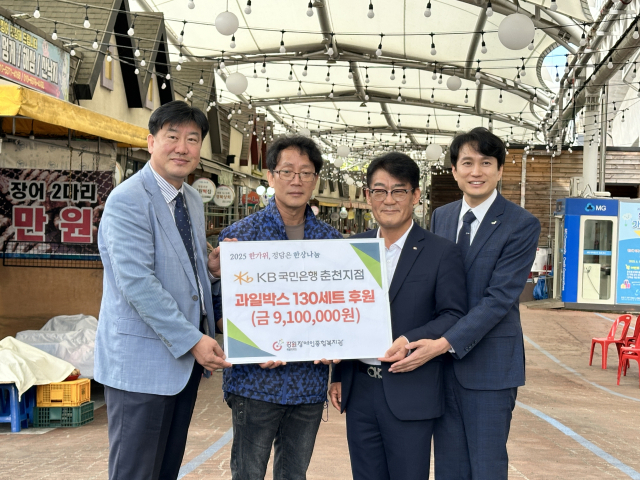 KB국민은행 춘천지점은 25일 풍물시장에서 강원특별자치도장애인종합복지관에 910만원 상당의 과일박스 130상자를 전달했다.