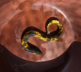 수만 마리의 뱀장어 중 겨우 1~2마리만 나오는 초희귀 '황금장어'가 춘천 소양호에서 발견돼 눈길을 끌고 있다.