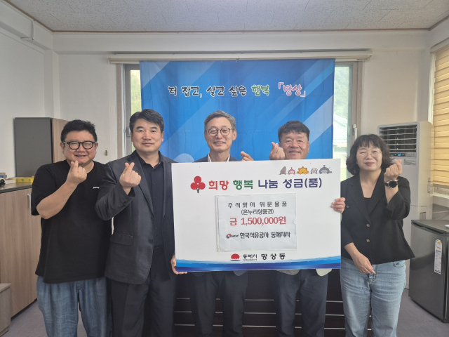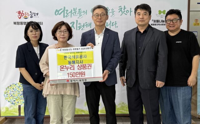한국석유공사 동해지사(지사장:곽서근)는 최근 저소득 취약계층을 위해 북평동과 망상동에 각각 온누리상품권(각 150만원 상당)을 기탁했다.