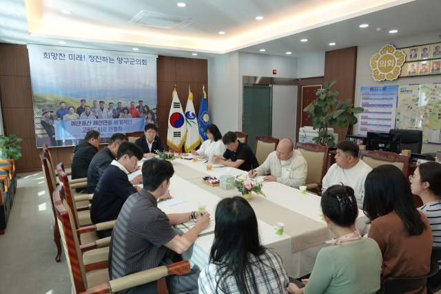 정창수 양구군의장은 29일 의장실에서 의회사무과 직원들과 주간업무보고 시 공직자의 선거 중립 의무를 준수할 것을 당부했다.