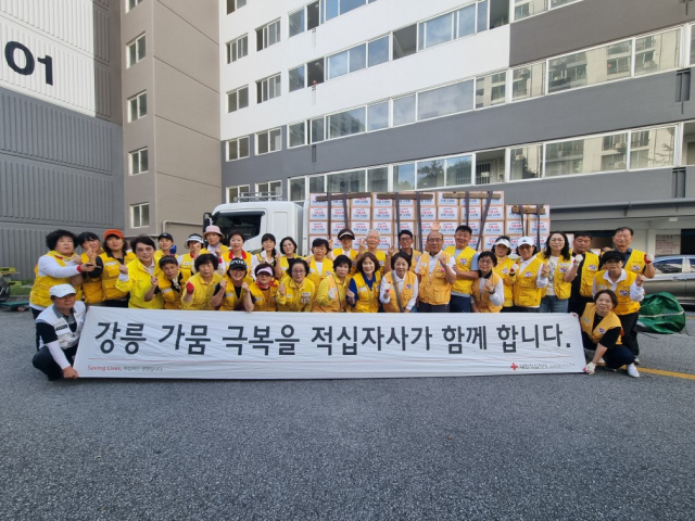 대한적십자사 강릉시 협의회(회장:박재록)는 지난 26일 회원 30여 명과 함께 태평양아파트 460세대에 생수 500㎖ 20개 한박스와 비상식량키트 1개씩을 방문 전달하며 봉사활동을 실시했다.