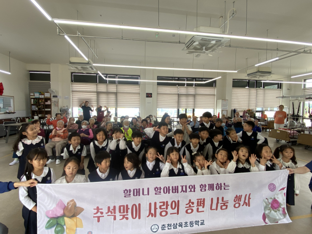 춘천 삼육초 1학년 학생들이 1일 베스트통합노인복지센터를 방문해 추석맞이 송편을 전달했다.