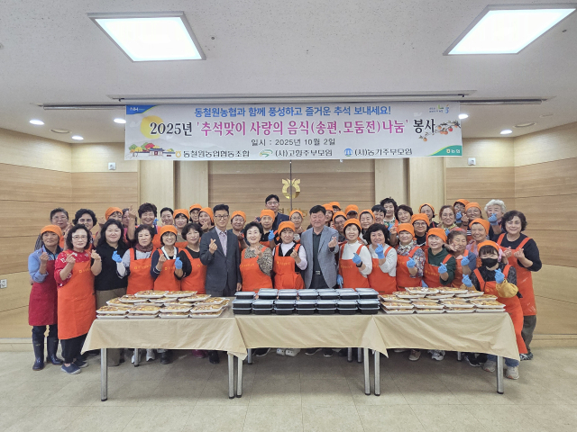 【철원】동철원농협(조합장:장명)은 추석 명절을 앞둔 2일 농가주부모임(회장:김학분)과 고향주부모임(회장:이연화) 등과 함께 지역 내 취약계층 및 독거 어르신을 위한 명절음식 나눔 봉사를 진행했다. 이날 참여자들은 철원오대쌀을 재료로 한 송편과 명절 모둠전 등을 만들고 지역 내 취약계층 및 독거 어르신 등 50여가구에 전달했다. 장명 조합장은 "동철원농협은 매년 설·추석 명절마다 명절음식 나눔봉사를 꾸준히 실천하고 있다"며 "앞으로도 조합원과 지역 독거어르신 모두가 함께 즐거운 명절을 보낼 수 있도록 상생하는 나눔활동을 지속적으로 이어가겠다"고 말했다.