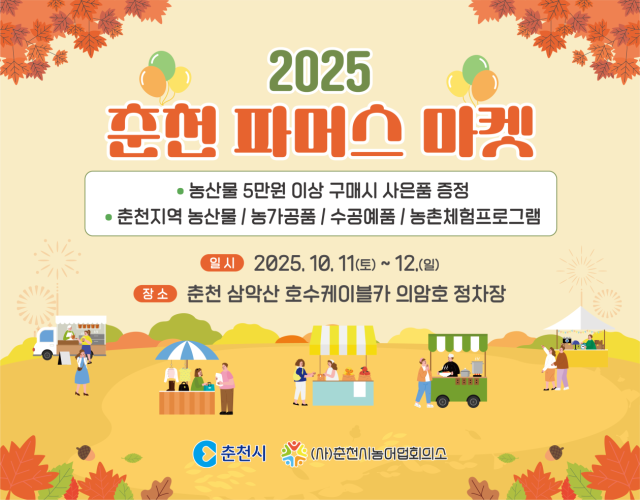 【춘천】 춘천시는 오는 11~12일 삼악산호수케이블카 의암호 정차장 마당에서 '2025 제2회 춘천 파머스마켓'을 개최한다고 밝혔다.