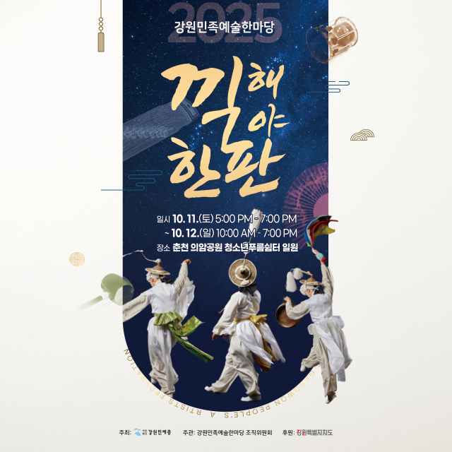 (사)강원민예총의 2025년 강원민족예술한마당 ‘끽해야 한 판’이 오는 11일과 12일 춘천 공지천 의암공원 청소년푸른쉼터 일원에서 펼쳐진다.