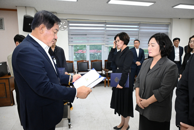 평창군은 13일 평창농업기술센터 2층 대회의실에서 5급·6급 이하 승진자와 신규 공무원에 대한 임용장 수여식을 개최했다.