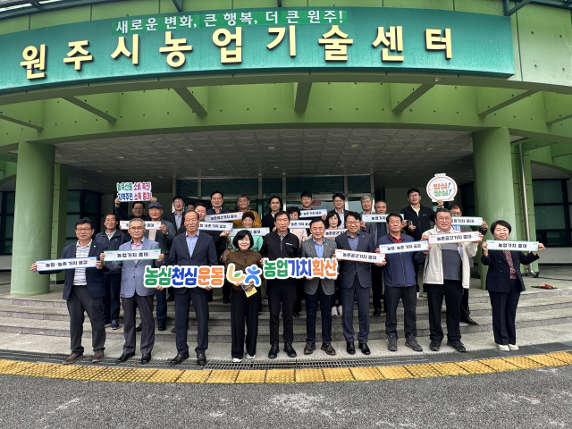 NH농협 원주시지부(지부장:김주석)는 14일 원주시농업기술센터에서 조창휘 원주시의원 등이 참석한 가운데 열린 ‘농심천심(農心天心) 운동’ 발대식을 개최했다. 농심천심 운동은 농부의 마음이 곧 하늘의 뜻이라는 의미로 국민의 먹거리를 생산하는 농업·농촌의 소중한 가치에 대한 범국민적 공감대를 형성하기 위해 마련됐다.