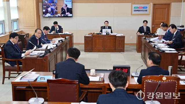 강원자치도의회 경제산업위원회(위원장:박찬흥)는 15일 위원회 회의실에서 제341회 임시회 제2차 회의를 열고 ㈜강원중도개발공사 출자 동의안 등을 심사했다. 박승선기자강원자치도의회 경제산업위원회(위원장:박찬흥)는 15일 위원회 회의실에서 제341회 임시회 제2차 회의를 열고 ㈜강원중도개발공사 출자 동의안 등을 심사했다. 박관희(국민의힘·춘천)의원이 질의하고 있다. 박승선기자강원자치도의회 경제산업위원회(위원장:박찬흥)는 15일 위원회 회의실에서 제341회 임시회 제2차 회의를 열고 ㈜강원중도개발공사 출자 동의안 등을 심사했다. 박관희(국민의힘·춘천)의원이 질의하고 있다. 박승선기자강원자치도의회 경제산업위원회(위원장:박찬흥)는 15일 위원회 회의실에서 제341회 임시회 제2차 회의를 열고 ㈜강원중도개발공사 출자 동의안 등을 심사했다. 정재웅(더불어민주당·춘천)의원이 질의하고 있다. 박승선기자강원자치도의회 경제산업위원회(위원장:박찬흥)는 15일 위원회 회의실에서 제341회 임시회 제2차 회의를 열고 ㈜강원중도개발공사 출자 동의안 등을 심사했다. 강정호(국민의힘·속초)의원이 질의하고 있다. 박승선기자