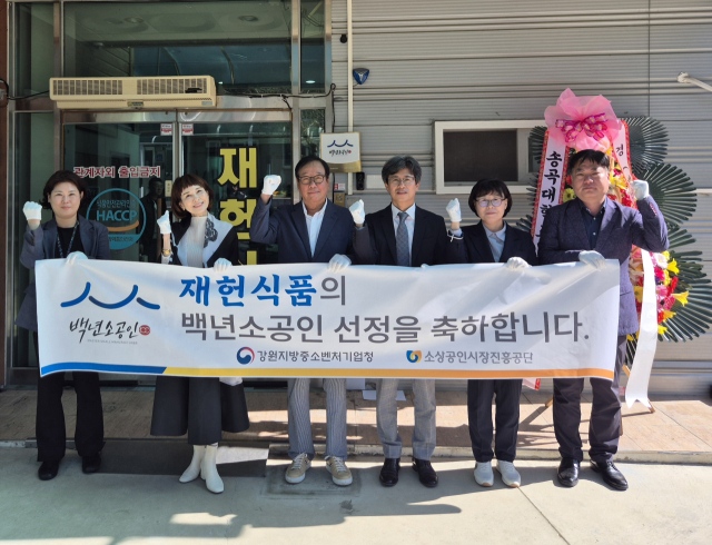 강원지방중소벤처기업청(청장:박순홍)와 소상공인시장진흥공단 강원지역본부(본부장:백순임)은 15일 2025년 백년소공인로 신규 지정된 재헌식품(대표:동영삼)에서 ‘백년가게 현판식’을 개최하였다고 밝혔다.