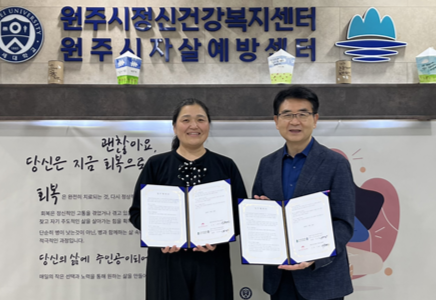원주시정신건강복지센터(센터장:민성호)와 원주시여자단기청소년쉼터(소장:이혜선)는 최근 시정신건강복지센터에서 위기 청소년 정신건강 조기 개입과 서비스 연계 체계 강화를 위한 업무협약을 했다. 이번 협약을 통해 두 기관은 청소년들이 건강한 사회구성원으로 성장할 수 있도록 청소년 정신건강 증진 및 자살 예방, 위기 청소년 심리적 지원 및 보호 제공 등에 상호 협력을 약속했다.