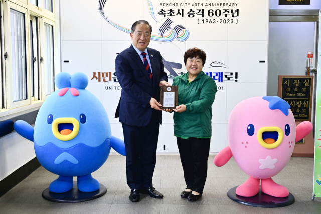 강원특별자치도자원봉사센터(센터장:송근직)는 지난 17일 속초시청에서 이달(9월)의 으뜸봉사단체로 선정된 속초시새마을부녀회(회장:이미숙)에 이달의 으뜸봉사상 상패를 전달했다.