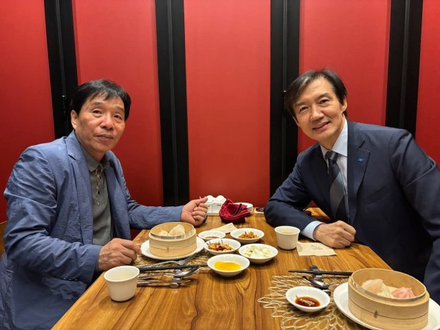 ◇이종득(사진 왼쪽) 조국혁신당 강원도당위원장 권한대행이 지난 17일 서울 모처에서 조국 비대위원장과 만난 모습. 페이스북 캡처.