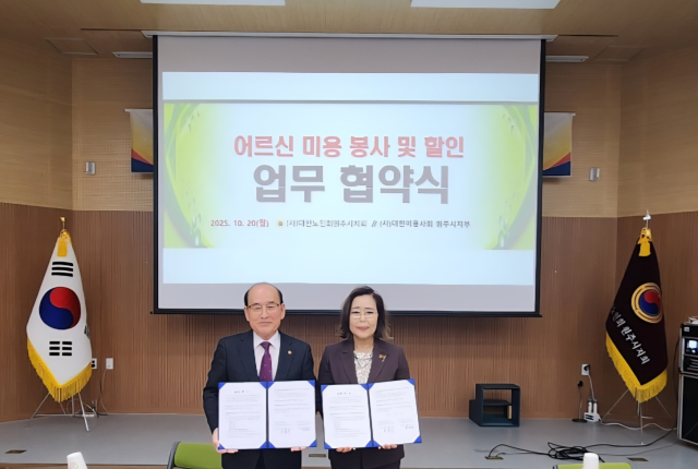 대한노인회 원주시지회(지회장:유종우)는 20일 지회 3층 대강당에서 (사)대한미용사회(대표:남양순)와 노인 미용 봉사 및 할인에 대한 협약을 진행했다.
